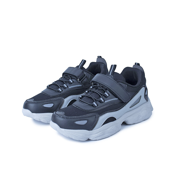 Привлекательные комбинированные спортивные кроссовки для мальчиков школьного возраста чудесно впишутся в детский гардероб. Практичный темный цвет оттеняется более светлыми элементами на подошве и боковой поверхности, поэтому кроссовки выглядят ярко и оригинально. При этом обувь оснащена эластичной шнуровкой с фиксирующим карабином и застежкой липучкой, которые облегчают самостоятельное обувание и плотно фиксирует обувь на ноге. Высокий протектор с аэро-вставками и рельефным противоскользящим рисунком изготовлен из легкого упругого материала, который улучшает динамические показатели ходьбы и бега. Вставки из текстильной сетки обеспечивают естественную вентиляцию внутри обуви. При изготовлении стельки использован материал с 80% содержанием хлопка.