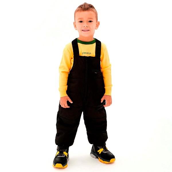 Полукомбинезон для мальчика выполнен в классическом чёрном цвете, который легко сочетается с любой одеждой. Модель имеет удобные регулируемые лямки и просторный крой, обеспечивающий свободу движений и комфорт во время активных игр и прогулок. Практичный дизайн дополняется функциональными швами, придающими изделию современный и аккуратный вид.
