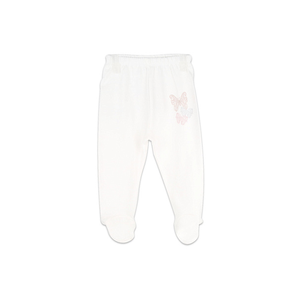 Трикотажные белые ползунки согреют ножки ребенка, но при этом не будут сковывать движения. В основе мягкой на ощупь ткани использован натуральный 100% хлопок, материал обеспечивает естественную вентиляцию и приятно прилегает к телу. Верх ползунков дополнен эластичной резинкой, она плотно фиксирует изделие на теле, но при этом не сдавливает кожу. Ступня закрытая, поэтому ножкам обеспечены тепло и сухость. Дизайн изделия минималистичен, единственное украшение – три бабочки на боку. Рекомендовано для детей ясельного возраста.