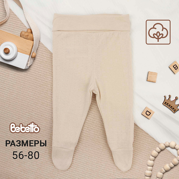 Ползунки Bebetto для девочки — это идеальный выбор для легкости и свободы движений. Бежевый цвет создает нежный образ, который подходит для повседневной носки. Широкая мягкая резинка аккуратно держит ползунки на талии, не оказывая давления на живот и кожу ребенка. Материал из натурального хлопка позволяет коже ребенка дышать.