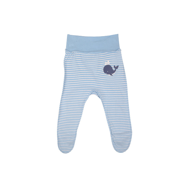 Ползунки – неотъемлемая часть гардероба новорожденных. Независимо от того, пеленаете вы малыша или нет, лучше держать его в тепле, и для этого точно пригодятся ползунки. Мягкие трикотажные штанишки на резинке-поясе будут комфортно регулировать температуру тела, не позволят переохладиться, но и не перегреют малыша. Прошитые пяточки позволяют ползункам удобно садиться по ноге. Свободная резинка не давит, но при этом удерживает ползунки на месте. Особенно хорошо комбинировать ползунки с боди – в таком случае можно не переживать о задранных рубашках и открытой пояснице. Ползунки подходят для детей ясельного возраста – в зависимости от комплекции малыша. Нейтральная голубая расцветка в белую полоску подойдет как мальчику, так и девочке.