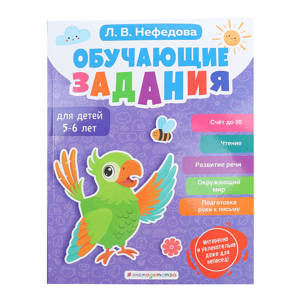 Пособие «Обучающие задания для детей 5-6 лет» разработано детским психологом и игровым терапевтом Л.В. Нефедовой. Книга включает разнообразные задания, направленные на изучение числового ряда до 20, развитие речи и подготовку руки к письму. Иллюстрации яркие и понятные, что помогает легко ориентироваться в материалах. Общее количество страниц — 96, размер пособия 20,5х26 см.