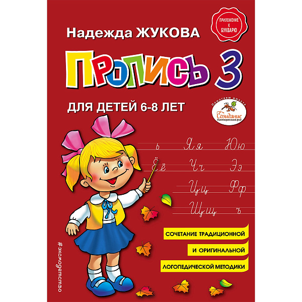 В основе обучения письму по методики Надежды Жуковой лежит слоговой принцип русской графики. Для удобства обучения материал прописей разделен на 3 тетради, с которыми желательно работать последовательно. В первой тетради изложены правила обучения написанию букв А, У, О, М, С, Ы, X, Р, Ш, Л, Н; во второй — К, Т, И, П, З, Й, Г, В, Д, Б, Ж, Е; в третьей — Ь, Я, Ю, Ё, Ч, Э, У, Ф, Щ. Это прекрасное подспорье для дошкольников и детей, у которых написание букв вызывает затруднения. Прописи являются приложением к знаменитому «Букварю» Надежды Жуковой, который успешно используют все родители, воспитатели и педагоги.