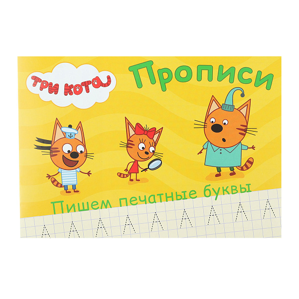 Познакомить ребенка с письмом помогут прописи «Пишем печатные буквы. Три кота». Персонажи любимого детского мультика уже спешат на помощь, чтобы занятия не казались малышу скучными и неинтересными. Начав по трафарету выводить буквы, ребенок будет постепенно тренировать кисть и научится правильно держать ручку, познакомиться с основами грамотности и подготовиться к школе.