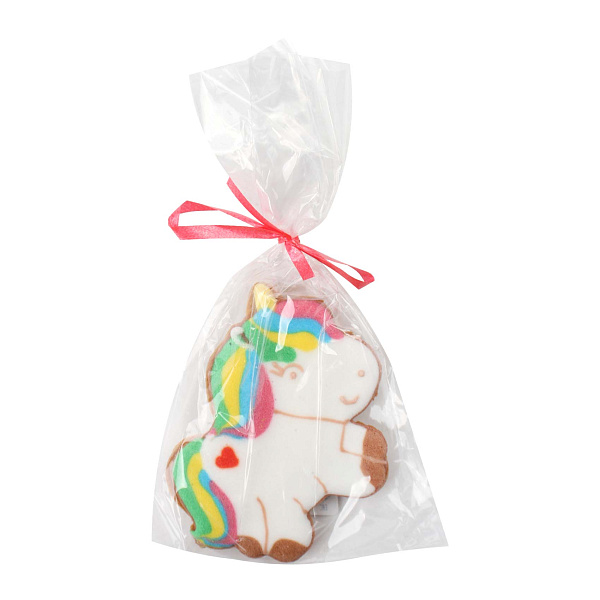 Пряник удобно упакован в прозрачный пакетик с аккуратной ленточкой, что сохраняет свежесть и позволит сделать лакомство сладким сюрпризом.