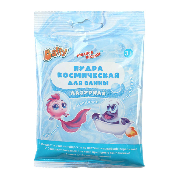 Космическая пудра для ванны BAFFY Лазурная клубника — оригинальное средство для детской ванны, предназначенное для детей от 3 лет. Пудра создаёт в воде эффект мерцания с калейдоскопом цветных переливов, превращая купание в увлекательное и волшебное приключение. Приятный аромат клубничной карамели наполняет ванную комнату сладкими нотками, даря ребёнку удовольствие и расслабление.