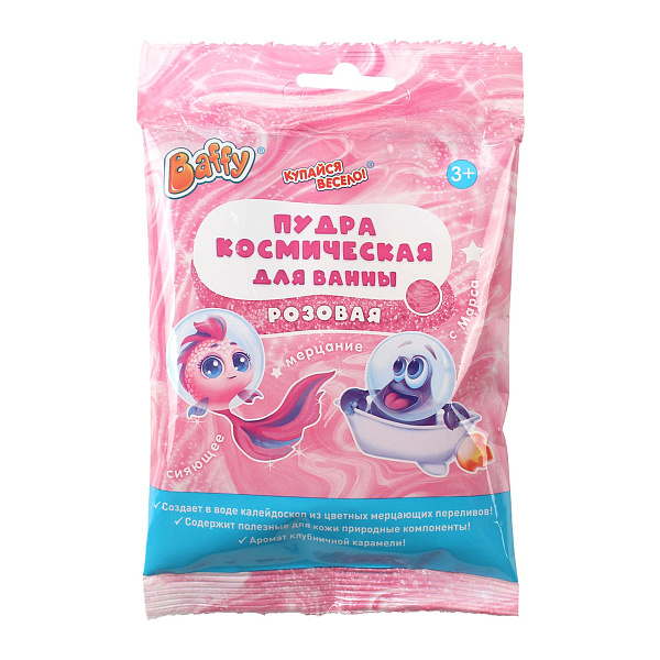 Космическая пудра для ванны BAFFY розовая клубника — оригинальное средство для детской ванны, предназначенное для детей от 3 лет. Пудра создаёт в воде эффект мерцания с калейдоскопом цветных переливов, превращая купание в увлекательное и волшебное приключение. Приятный аромат клубничной карамели наполняет ванную комнату сладкими нотками, даря ребёнку удовольствие и расслабление.