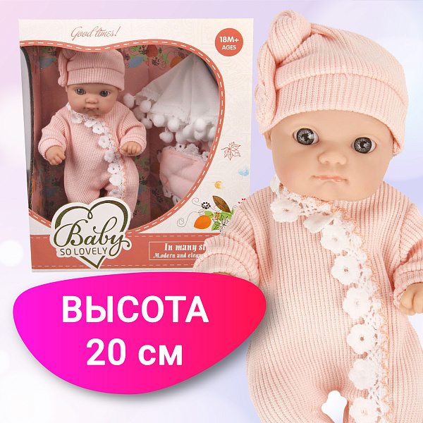 Играя с пупсом-малышом, девочка познакомится с ролью мамы или старшей сестры, научится заботиться о маленьких, научится ответственности. Игрушка идет в комплекте с мягким комбинезоном и шапочкой розового цвета. Комбинезон украшен рюшами, связанными крючком. Куколку можно укладывать спать, собирать на прогулку. Для этого в наборе присутствует теплое одеяло.