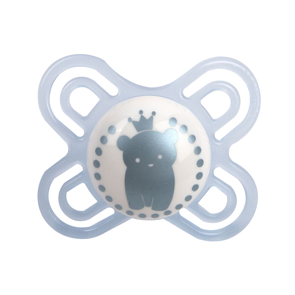 Форму утверждали лучшие ортодонты и стоматологи — пустышка «Совершенное начало» имеет достаточно говорящее название. И это действительно так: имитируя материнскую грудь, она не мешает кормлению, но уже формирует правильное расположение зубов и подготавливает речевой аппарат, тренируя лицевые мышцы во время сосания. Оформление подобрано с учетом «королевского» статуса крохи — голубой мишка с короной украшает держатель и подчеркивает цветом, что это аксессуар для мальчика.