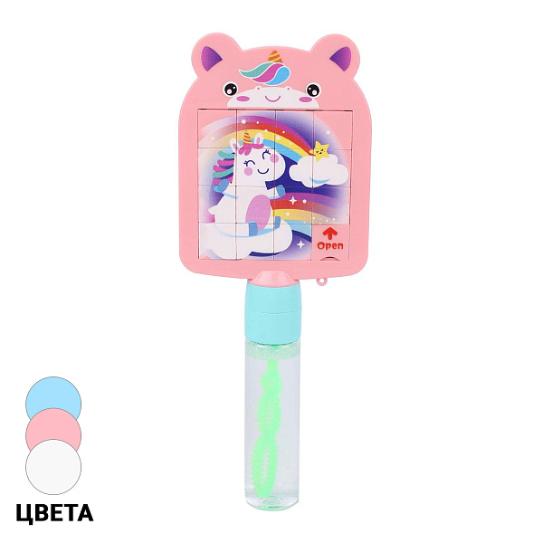 Игрушка мыльные пузыри «Пазл» объемом 60 мл представляет собой многофункциональное развлечение для детей. Каждый вариант декорирован в форме животных: розовый единорог, бежевый барашек с алфавитом и голубой котик с цифрами. Такое оригинальное оформление делает игрушку яркой и привлекательной.