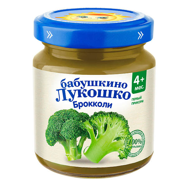 Пюре Бабушкино лукошко капуста брокколи рекомендуется в качестве первого овощного прикорма. Брокколи - низкоаллергенный продукт. Высокое содержание витамина С, фолиевой кислоты и железа улучшает кроветворение и способствует профилактике железодефицитной анемии. Укрепляет иммунитет. В составе капуста брокколи, вода питьевая. Без ГМО. Без добавления соли.