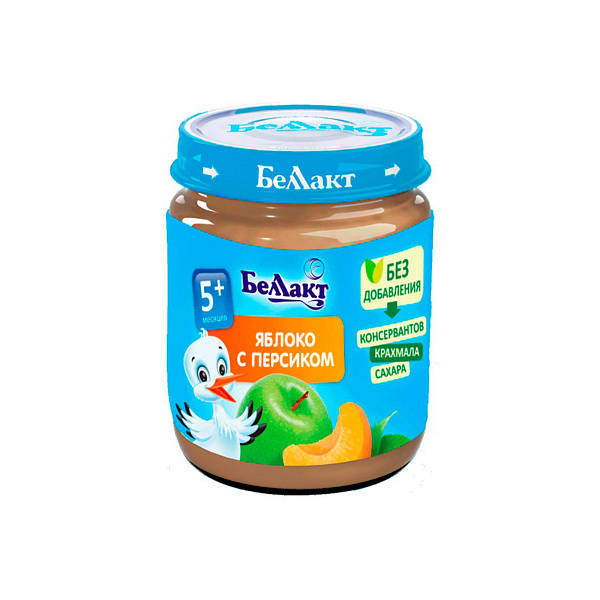 Детское фруктовое пюре «Беллакт» с добавлением яблок и спелых груш рекомендуется в качестве продукта прикорма детям с 5 месяцев.