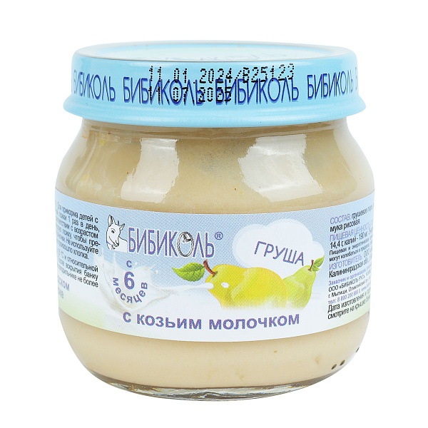 Пюре «Бибиколь» «Груша с козьим молочком» — это питательное и вкусное детское питание, предназначенное для малышей от 6 месяцев. Герметичная крышка обеспечивает свежесть пюре и легкость в использовании. Нежное пюре кремового оттенка изготовлено из натуральных ингредиентов, включая грушевое пюре, козье молоко и рисовую муку. Эти компоненты тщательно подобраны для обеспечения максимальной пользы и безопасности для здоровья малышей. Продукт не содержит сахара, консервантов и искусственных добавок, сохраняя все полезные свойства груши и молока.