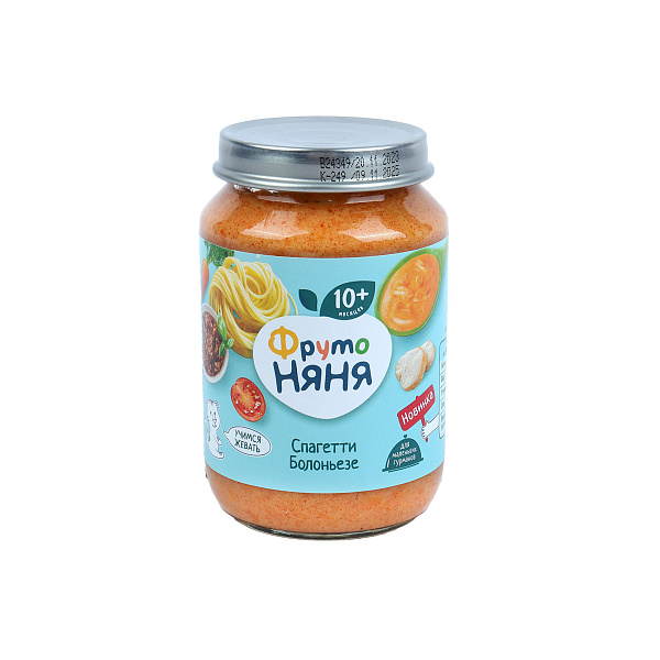 Новое блюдо разработано для кормления детей с десяти месяцев. Пюре приготовлено из диетического филе индейки, спагетти, приправлено соусом болоньезе. Оно имеет натуральный мясной вкус, который малыши оценят по достоинству. Питание содержит небольшие кусочки пищи, необходимые для развития жевательных навыков.