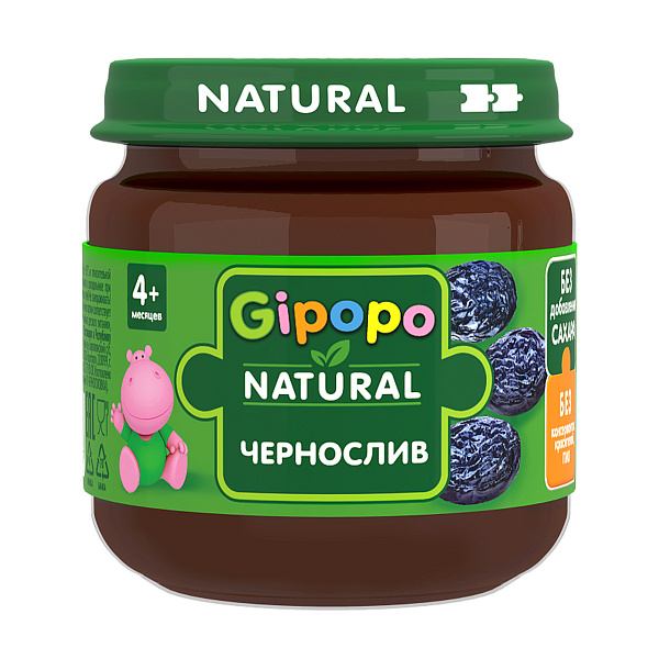 Фруктовое пюре Gipopo Natural «Чернослив» в стеклянной банке – это натуральный продукт для прикорма детей с 5 месяцев. Объем 80 граммов. Пюре изготовлено из отборного чернослива, без добавления сахара и консервантов, что делает его отличным выбором для первых прикормов.
