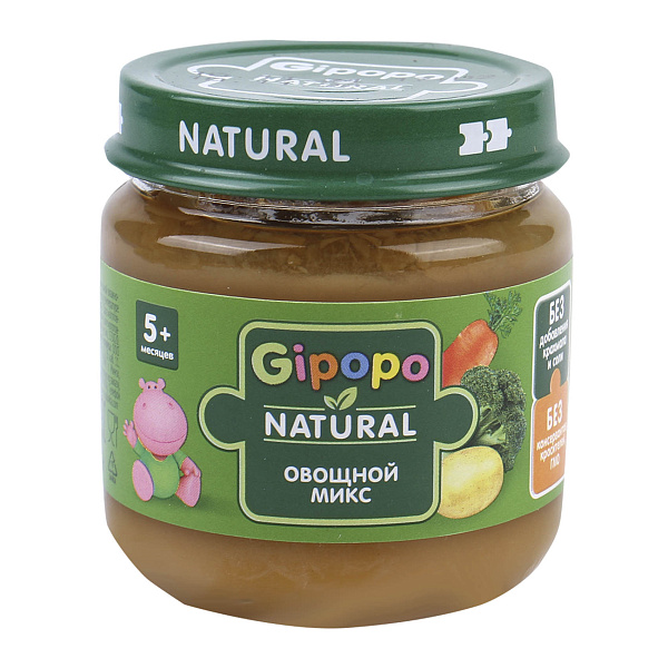 Пюре «Гипопо» со вкусом «Овощной микс» с морковью, картофелем и брокколи — идеальный вариант для введения прикорма для малышей от 5 месяцев. Этот продукт предлагает сбалансированный вкус и насыщает ребенка необходимыми витаминами и минералами.