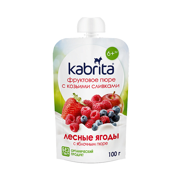 Пюре Kabrita с козьими сливками с яблочным пюре лесные ягоды 100г БЗМЖ