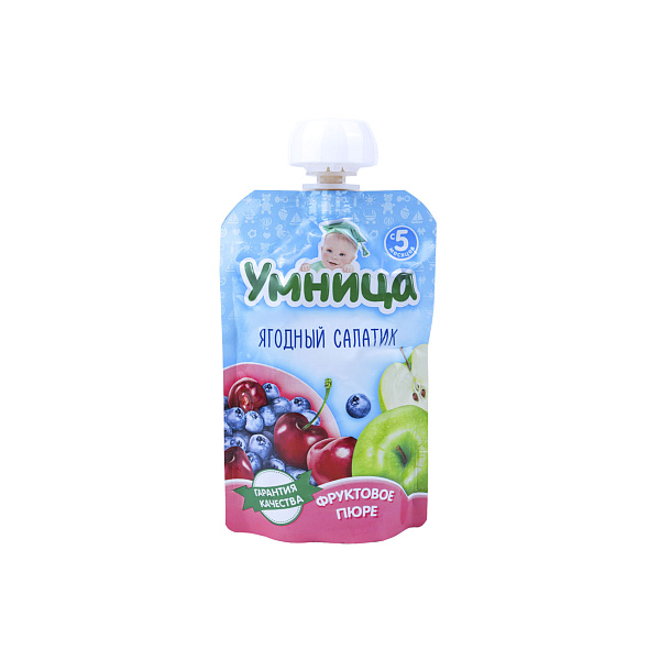 Уже с первого прикорма ребенка нужно приучать кушать не только овощи, но и фрукты. Нежное, взбитое из яблок, вишен и голубики пюре «Умница» станет идеальным вариантом для полдника. Натуральный десерт сохранил насыщенный вкус свежих плодов и ягод, а состав радует высоким содержанием витаминов, минералов и микроэлементов. Пюре повышает иммунитет, утоляет голод, освежает и способствует работе кишечника. Специальная мягкая упаковка — настоящая находка для родителей. Ее комфортно брать с собой на прогулку и в дорогу — ребенок сможет кушать сам, просто высасывая десерт из пластикового носика, и при этом он не запачкает себя и все пространство вокруг.