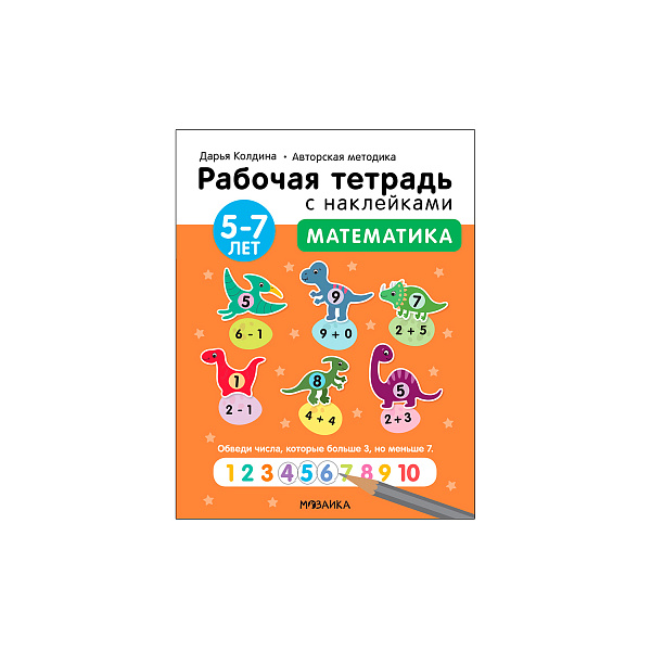 Тетрадь рабочая МОЗАИКА kids Математика с наклейками 5-7лет Колдина Д.