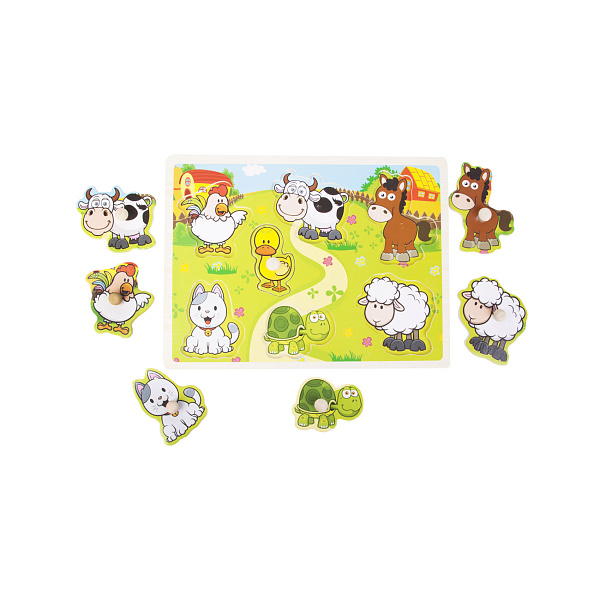 Оригинальная игра предназначена для девочек и мальчиков годовалого возраста. С ее помощью несложно познакомить детей с домашними животными, научить их анализировать форму и сравнивать очертания фигурок. Такие занятия полезны для развития памяти, логического мышления, речи, моторики рук.