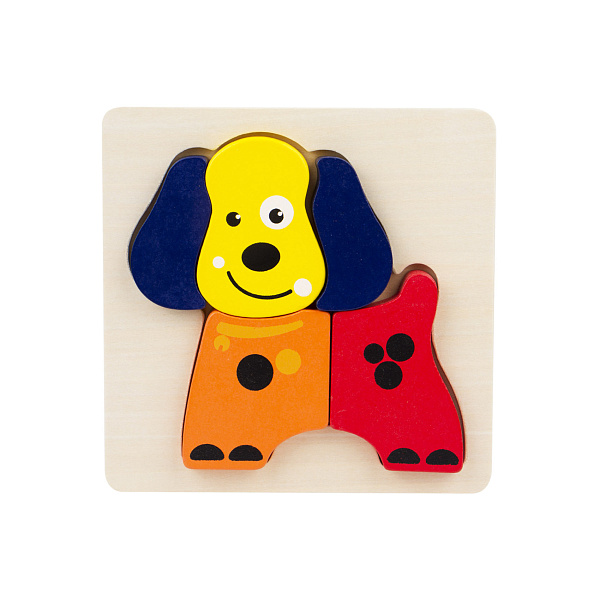 Считается, что складывание паззлов помогает ребенку развивать математические способности и пространственное мышление. Но картонные пазлы не подходят маленьким детям – они быстро размокают, деформируются и рвутся. Другое дело деревянные паззлы! Деревянный паззл «Щенок» напоминает мозаику: кусочки картинки твердые и приятные на ощупь, легко ложатся в маленькую ладонь, чудесно складываются друг с другом. Деревянная рамка помогает ребенку ориентироваться в последовательности сборки и предотвращает пазл от случайного взмаха руки. Каждый кусочек раскрашен собственным цветом, тренируя также восприятие цветов.