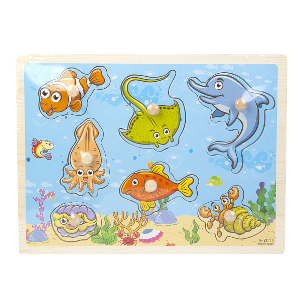 Вставные вкладыши познакомят малыша с обитателями морских глубин и откроют ему мир животных. Каждая рыбка приветливо улыбается и будто приветствует малыша – кроха и сам захочет познакомиться с ними поближе. Процесс игры напоминает сборку паззла – для цельной картинки ребенку необходимо вставлять каждую деталь в предназначенную ячейку. Таким образом он научится соотносить форму рыбки с отверстием и подбирать друг к другу подходящие элементы.