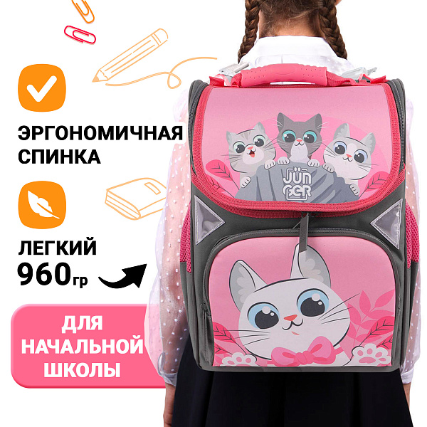 Ранец JUNGER корпусный с принтом Пушистые озорники котята для начальной школы