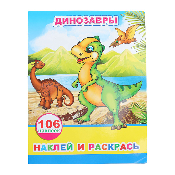 Раскраска Наклей и раскрась Динозавры с 0мес