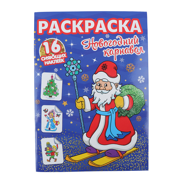 Раскраска Новогодний карнавал с сияющими наклейками 16шт с 3лет