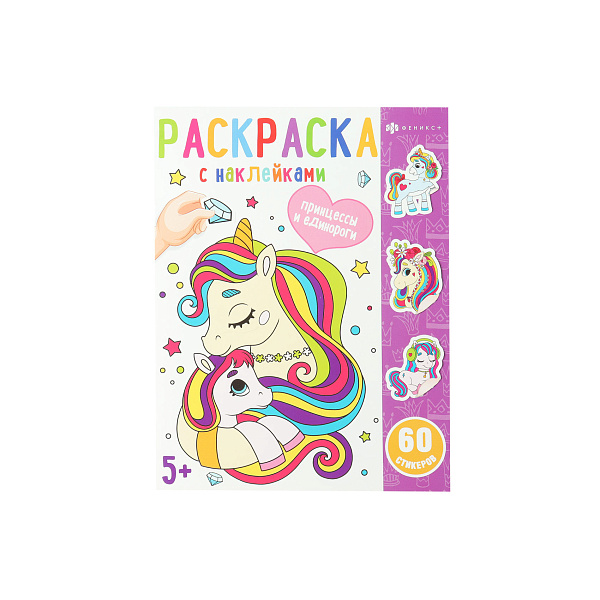Помимо страниц с рисунками к раскраске прилагаются 60 стикеров с фигурками единорогов. Эти наклейки могут быть образцом при раскрашивании рисунков книжки.