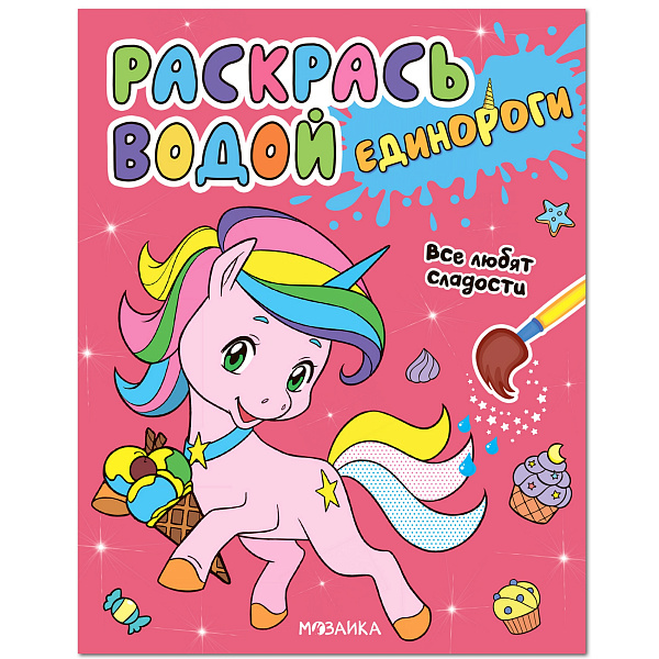 Раскраска «Все любят сладости» из серии «Раскрась водой. Единороги» — это