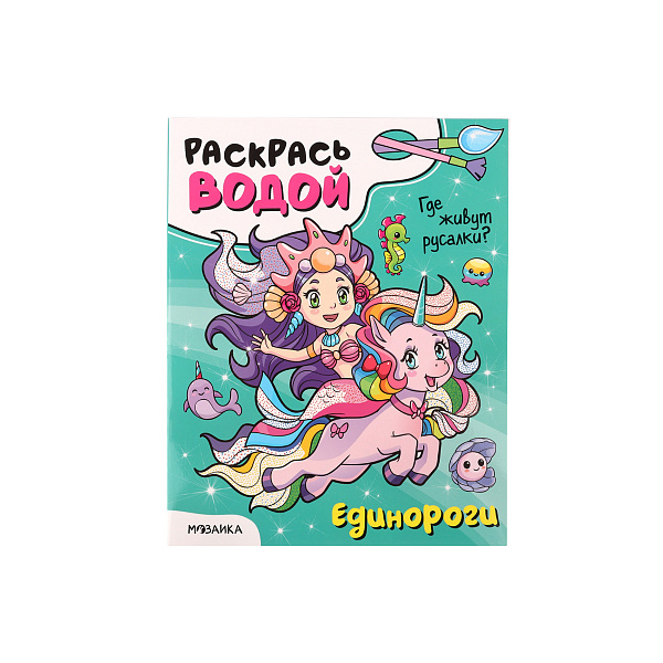 Раскраска «Единороги: где живут русалки?» содержит страницы рисунков, обозначенных лишь контурными линиями. Чтобы превратить контуры в полноценную картинку, ребенок должен обмакнуть в воду кисточку, а потом провести по странице. Сразу после этого на глазах у малыша произойдет чудо – рисунок вдруг станет разноцветным и ярким. Единороги и русалки словно оживут на страницах книжки.