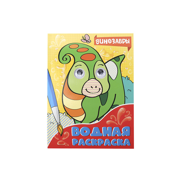Эта раскраска имеет один очень оригинальный элемент – глазки из пластика, благодаря которым каждое изображение выглядит веселым и более живым. На листах книжки размещены картинки доисторических ящеров. Чтобы их раскрасить, следует провести по изображениям смоченной в воде кисточкой.