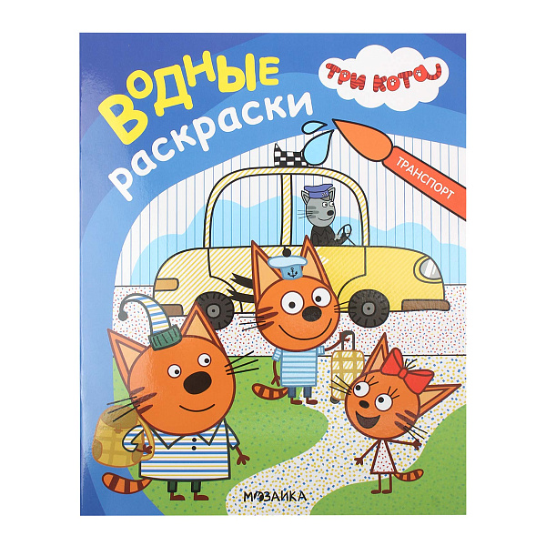 Раскраска водная Мозайка Kids Три кота транспорт 16стр с 2лет