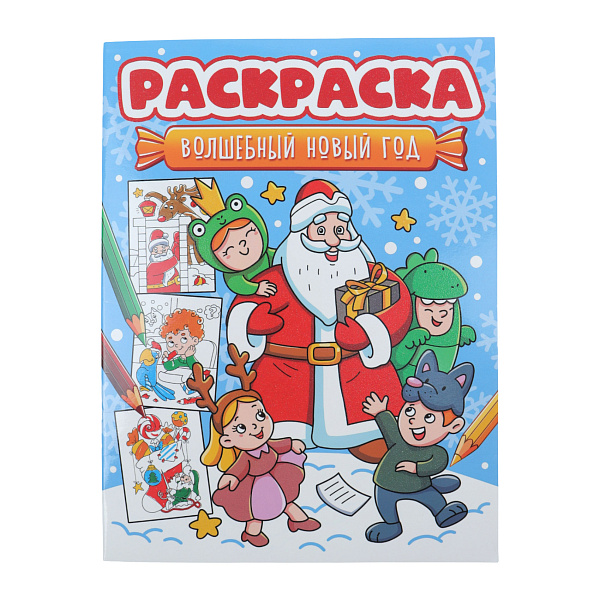 Раскраска «Волшебный Новый год» - это яркое и доброе путешествие в мир зимнего чуда, где дети становятся художниками праздника. На обложке - веселая компания: Дед Мороз с подарками, дети в новогодних костюмах, забавные зверушки и даже космонавт с елкой - все это создает атмосферу радости, ожидания чуда и беззаботного веселья. Внутри - 32 страницы с контурными рисунками: от классических сцен с Дедом Морозом и Снегурочкой до необычных - космические елки, фейерверки, животные в шапках-ушанках. Каждый рисунок - маленькая история, которую ребенок может раскрасить по своему настроению, добавив цвет, эмоции и детали.