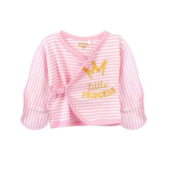 Распашонка Lanson Kids Little Princess с рукавичками в полоску бело-розовая