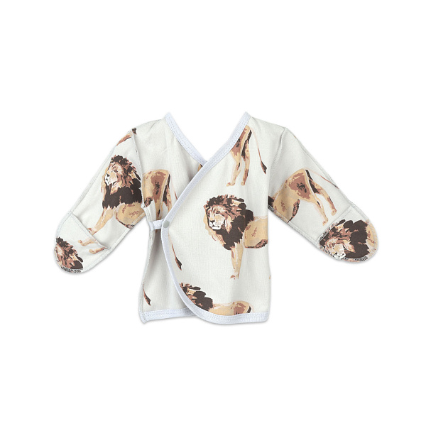Свободная распашонка порадует маленького львенка и его родителей. Хлопковый трикотаж в основе ткани хорошо пропускает воздух и поглощает влагу, поэтому малышу будет комфортно. Рукава с антицарапками укутают руки малыша и защитят его от случайных царапин. Распашонка застегивается благодаря застежке-кнопке сбоку – это облегчает переодевание ребенка и не сковывает движения. Края распашонки обработаны серой окантовкой. Красочный дизайн со львами завершает дизайн детской распашонки.