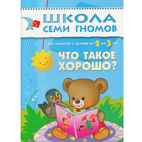 Книга «Что такое хорошо?» познакомит малыша 2-3 лет с правилами поведения. На каждой странице напечатано одно четверостишие стихотворения Маяковского, с иллюстрациями, понятными ребенку. Внизу страницы даны рекомендации родителям, как вместе с ребенком прочесть эти стихи, на что обратить внимание и какие вопросы задать. Перед прочтением книжки нужно вырезать гномика из картонной вставки, гномик будет помогать читать книжку малышу.