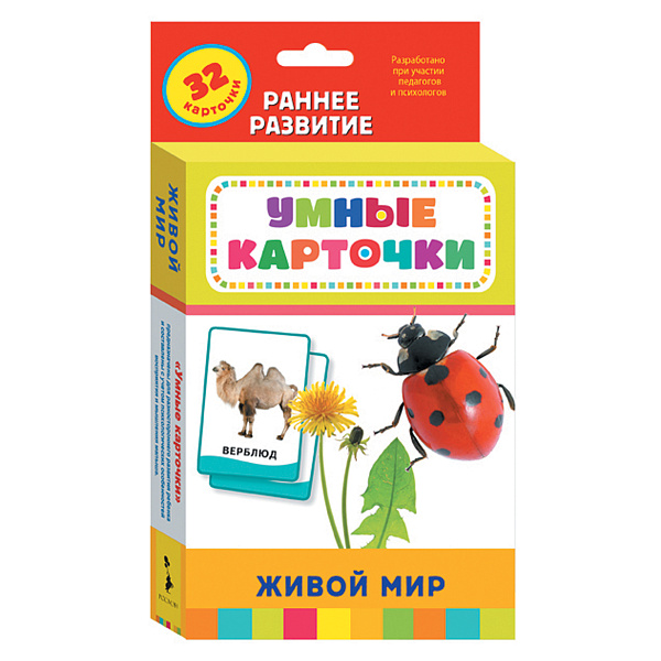 Умные карточки «Живой мир» — это познавательная игра для совместного досуга мамы и ребенка. Не каждый взрослый знает, как правильно организовать учебный процесс, чтобы было весело, познавательно и с толком. В наборе предложены 32 картинки из плотного картона, на каждой из которых изображены представители флоры и фауны от грибов и до зверей.