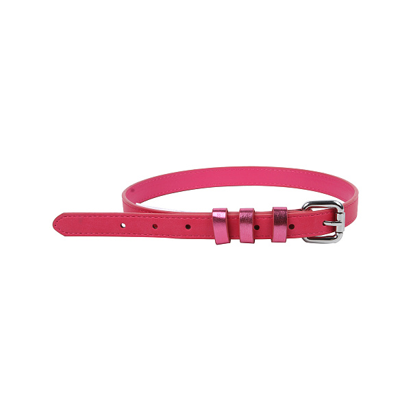 Ремень для девочки сшит из прочной искусственной кожи (полиуретан 100%) яркого розового цвета, изготовленной из полиуретана. Оптимальная длина ремня семьдесят пять сантиметров подойдет для большинства девочек. Ремень с большим количеством отверстий удобно застегивается на металлическую пряжку классической формы в оттенке под серебро. Блестящие шлевки добавляют стильные акценты этой модели и позволяют аккуратно заправить свободный край. Узкий ремень прекрасно сочетается с джинсами, а также с шортами и юбками подходящих цветов. Он станет необходимым аксессуаром в гардеробе юной модницы.