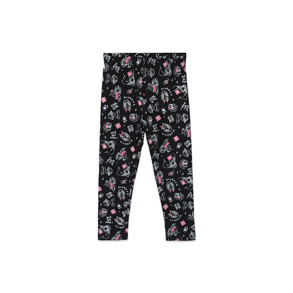 Рейтузы для девочки сшиты из плотной хлопковой ткани с небольшим добавлением эластана. Хлопковая ткань, мягкая и приятная на ощупь, обладает хорошей гигроскопичностью и быстро сохнет после стирки. Благодаря содержанию волокон эластана трикотаж хорошо тянется. Рейтузы комфортно садятся на фигуру любого типа, мягко облегают тело и не стесняют движений. Такие рейтузы можно носить дома или надевать вместе с платьем в теплую погоду. В пояс вшита резинка, надежно удерживающая рейтузы на линии талии. Рейтузы черного цвета с контрастным бело-розовым рисунком смотрятся очень стильно.
