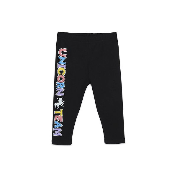 Черные рейтузы с яркой надписью и белым единорогом послужат креативным решением в гардеробе маленькой девочки и создадут уникальный образ, который будет радовать как саму малышку, так и окружающих.