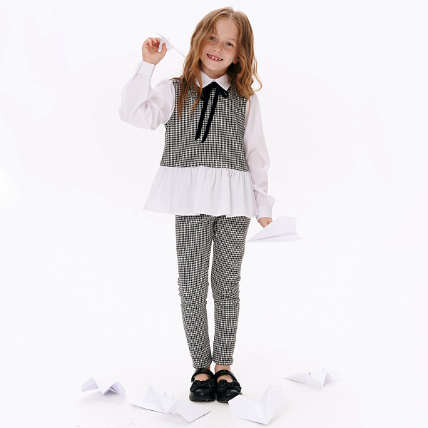 Удобные рейтузы для девочек выполнены в стильном черно-белом дизайне с узором «гусиная лапка». Изготовлены из качественных материалов: полиэстер 75%, вискоза 23% и эластан 2%. Благодаря такому составу рейтузы отличаются высокой прочностью, эластичностью и приятными тактильными свойствами.