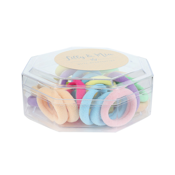 Большое количество ярких резинок помогает подобрать подходящие по цвету аксессуары для каждого случая. Резинки удобно хранить в компактной прозрачной тубе, так они не потеряются и будут под рукой дома, на даче или в поездке.