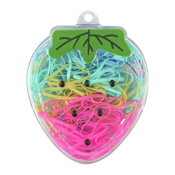 Маленькие резинки из силикона в красивой прозрачной упаковке в форме ягоды.
