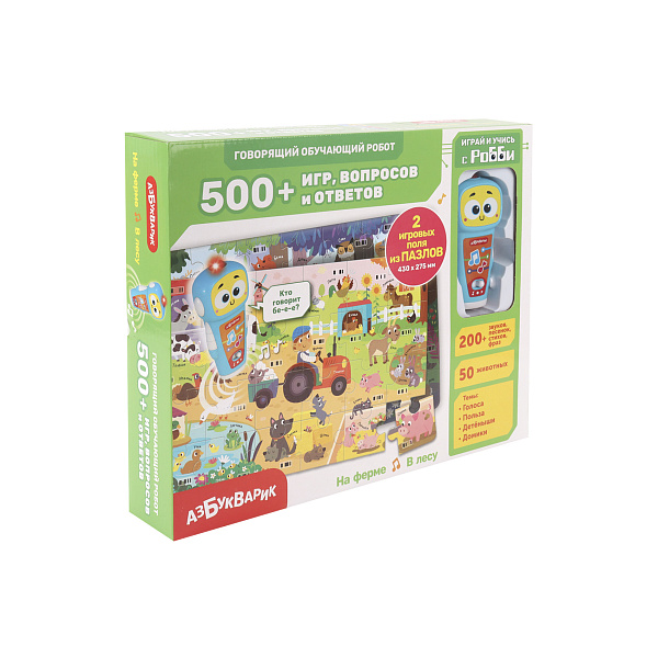 Говорящий «Обучающий робот На ферме в лесу 500+» — это расширенная версия похожей игры, у которой было одно поле для пазлов. Благодаря новой версии популярного гаджета Робби и ребенок смогут играть в 2 раза дольше!