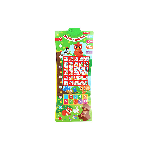 Обучающий плакат–ростомер «Лесная школа» — это увлекательная игрушка, которая поможет узнать рост, освоить цифры и буквы, а также познакомит малыша с лесными жителями. С помощью ростомера дети в игровой форме получают первые знания. Обучающая программа включает стихотворения, потешки, сказки, вопросы, загадки, увлекательные игры – 100 звуков, 60 вопросов и загадок, 10 песен и 3 сказки.