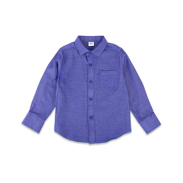 Синяя рубашка для мальчиков изготовлена из смесовой хлопчатобумажной ткани с добавлением полиэстера. Мягкое полотно с узором в мелкие белые зернышки почти не сминается, поэтому при использовании выглядит аккуратно.