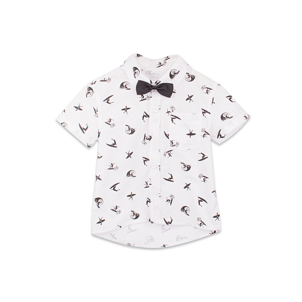 Стильная белая рубашка с коротким рукавом для малышей декорирована печатными паттернами с изображениями фигурок спортсменов. Для изготовления рубашки использована ткань из 75% хлопка с добавлением акрила. Акрил придает ткани особую мягкость и бархатистость, такая ткань приятна к коже, гипоаллергенна и не натирает. А натуральный хлопок в составе обеспечивает чудесное впитывание излишней влаги, защищает нежную кожу малыша от бактерий и грибков. Рубашка при этом дополнена галстуком-бабочкой на регулируемой резинке, позволяющей завершить образ. Рекомендовано для детей дошкольного и школьного возраста.