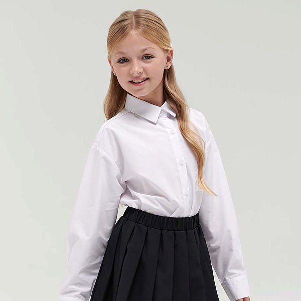 Классическая белая рубашка с длинным рукавом для девочки — это идеальный выбор для школы и торжественных мероприятий. Универсальный дизайн легко сочетать с различными элементами гардероба.